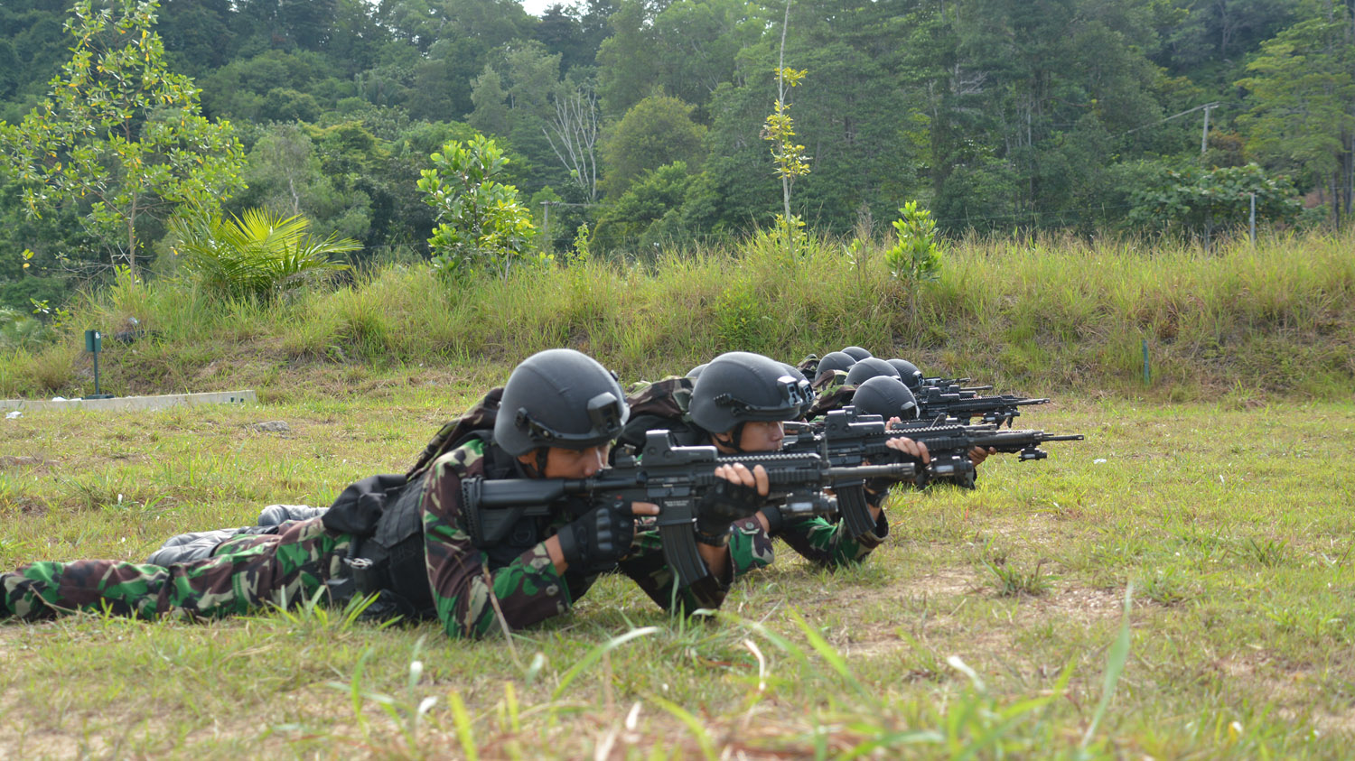 Suasana Latihan Parsial PPRC di Tarakan Kalimantan Utara, TampakPada Gambar Prajurit TNI Berlatih Menembak