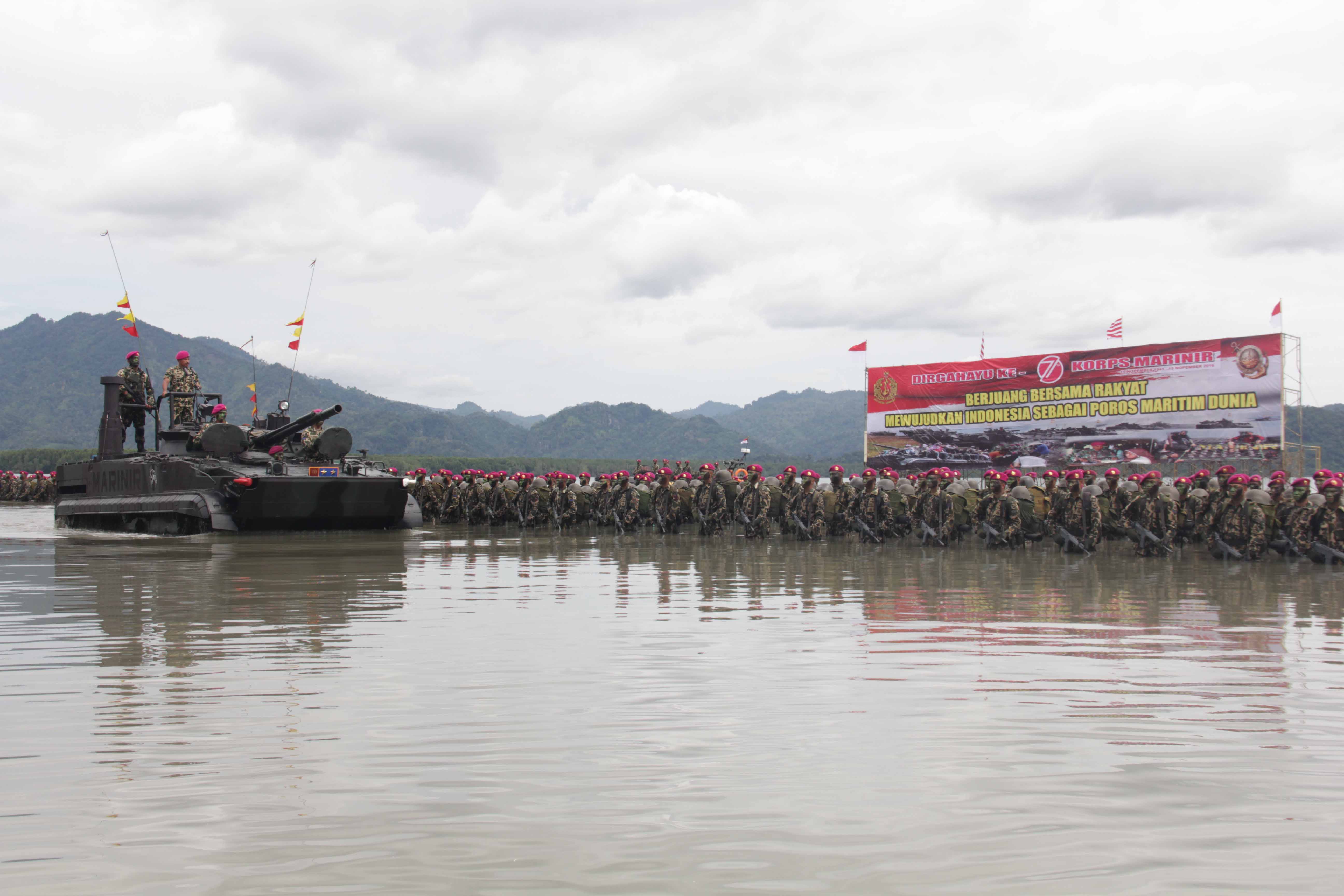 Sementara itu, Komandan Korps Marinir (Dankormar) Mayjen TNI (Mar) R.M. Trusono, S.Mn., menyatakan bahwa tema Hari Ulang Tahun ke-71 Korps Marinir tahun 2016 adalah “Berjuang Bersama Rakyat Mewujudkan Indonesia sebagai Poros Maritim Dunia”.