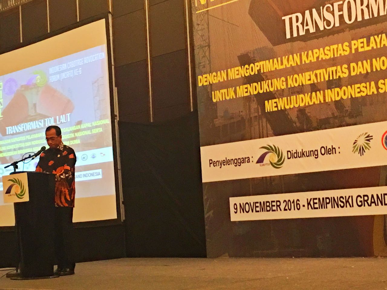 Forum yang bertajuk “Transformasi Tol Laut dengan Mengoptimalkan Kapasitas Pelayaran dan Industri Galangan Kapal Nasional Untuk Mendukung Konektivitas dan Normalisasi Biaya Logistik Nasional Serta Mewujudkan Indonesia Sebagai Poros Maritim Dunia” itu melibatkan tiga pilar dalam dunia kemaritiman, yakni akademisi, pelaku bisnis dan pemerintah.