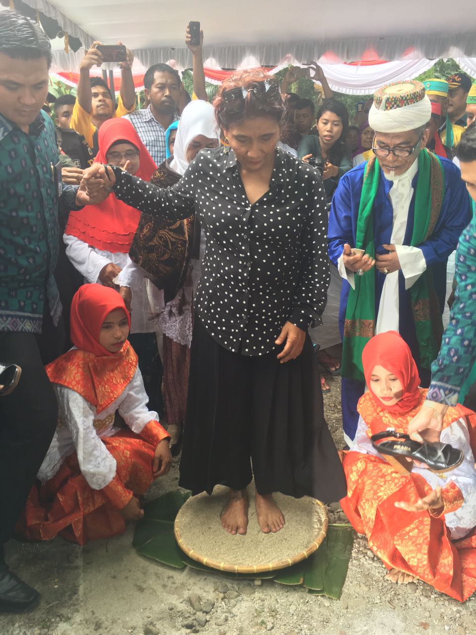 Kedatangan Susi bersama rombongan di lokasi peresmian disambut dengan prosesi upacara adat serta antusias warga setempat yang ingin berjabat tangan dengannya. Dalam sambutannya, Susi mengatakan peresmian kebun kima negeri Morella ini tidak terlepas dari potensi perairan Morella sebagai habitat dari spesies langka yang dilindungi yakni Kima. Dari tujuh jenis kima dunia, tiga diantaranya ditemukan di perairan ini, yakni kima sisik, kima lubang dan kima raksasa. “Mohon tetap dijaga ikannya, kimanya. Kima itu berkembang biaknya lama, butuh berpuluh-puluh tahun. Nanti anak cucu kita tidak tahu kima itu apa? Ikan juga gitu, jangan setiap hari ditangkap. Harus ada waktu recoverynya. Paling tidak, sehari dalam seminggu”, ungkap Susi dalam acara peresmian kebun kima dan pembukaan foto bawah laut di Negeri Morella, Leihitu, Kabupaten Maluku Tengah, Jumat (16/12).