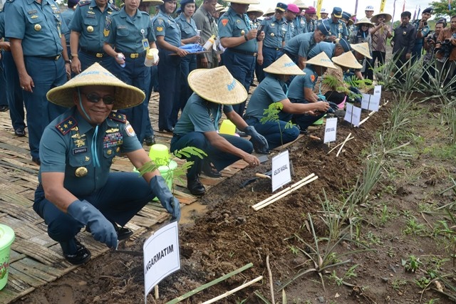 Kasal Laksamana TNI Ade Supandi bersama Pangarmatim Laksamana Muda TNI Darwanto saat peresmian budidaya tanaman dilahan kering.