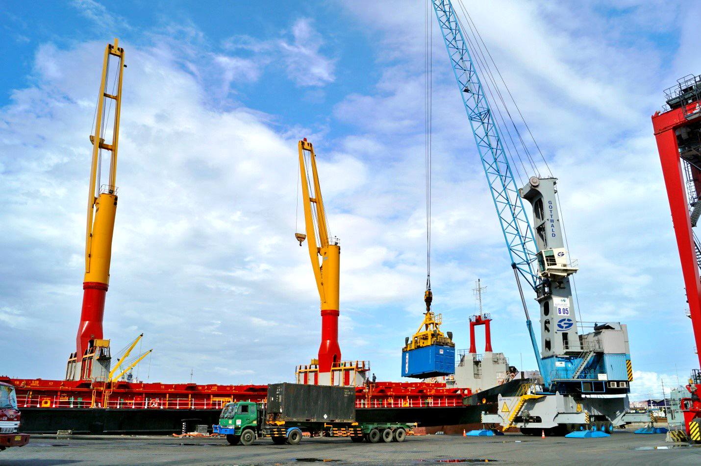 Crane BJTI Port mengangkat peti kemas di Terminal Berlian.