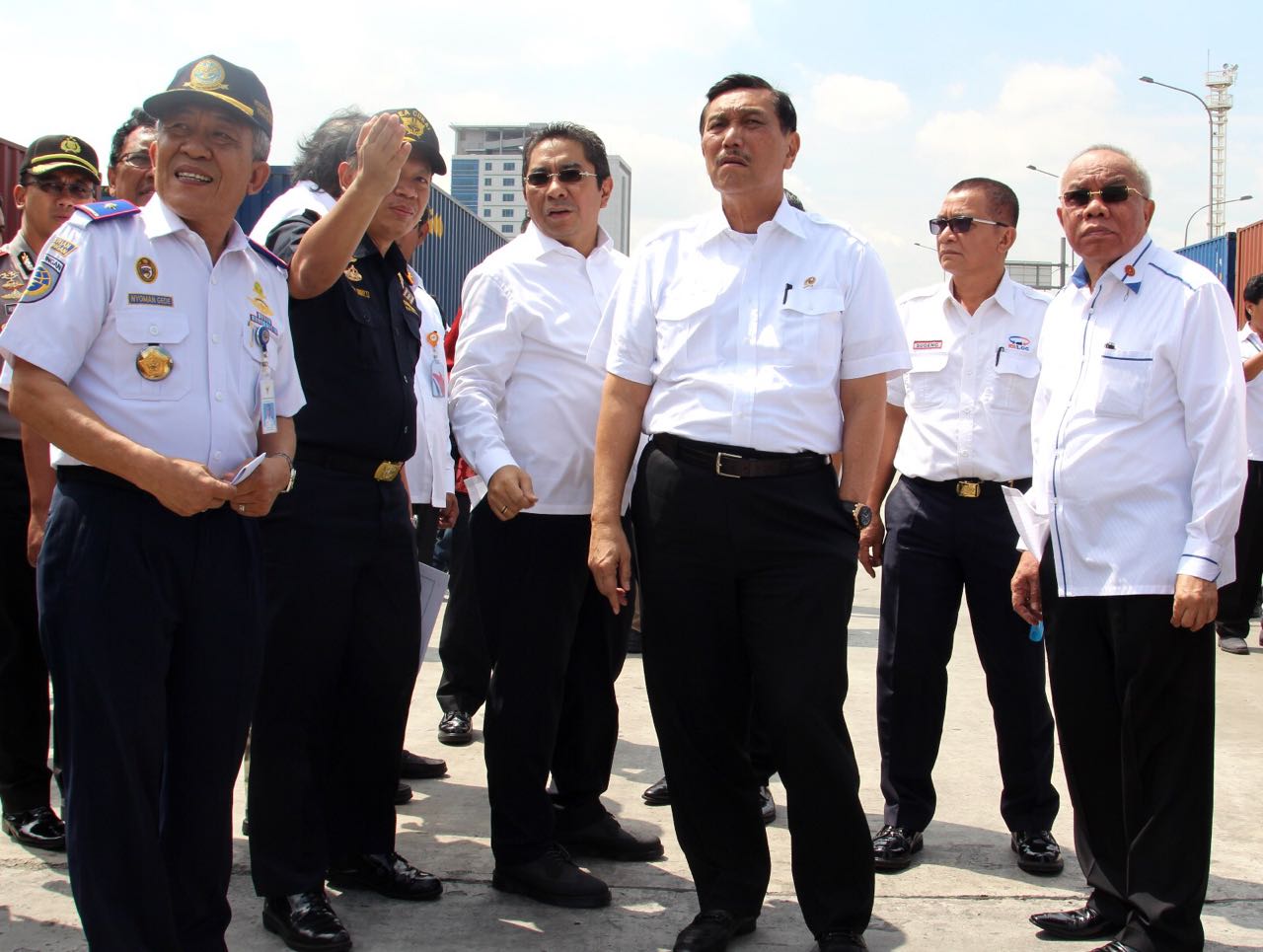 Menteri Koordinator Kemaritiman, Luhut Binsar Pandjaitan, ketika mengunjugi Pelabuhan Tanjung Priok.