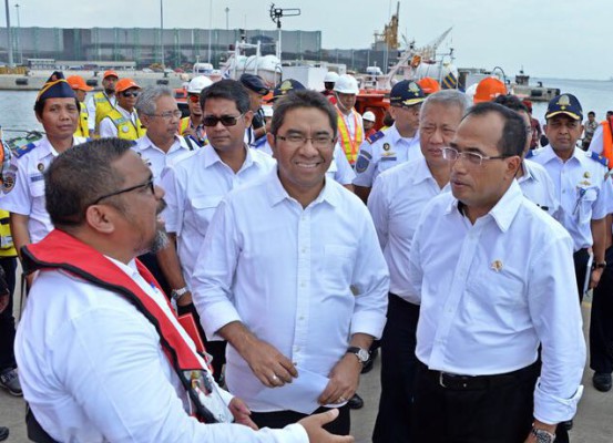 Dirut IPC Elvyn G Masassya bersama Menhub Budi Karya Sumadi saat meninjau IKT di Tanjung Priok