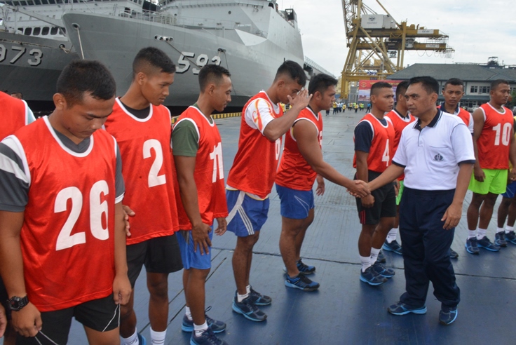 MNOL, Jakarta – Panglima Komando Lintas Laut Militer (Pangkolinlamil) Laksma TNI Agung Prasetiawan, M.AP. meninjau kesiapan Tim Dayung Kolinlamil yang akan berlaga dalam Pekan Olah Raga TNI AL di Dermaga Kolinlamil, Jakarta Utara, Selasa (7/3)