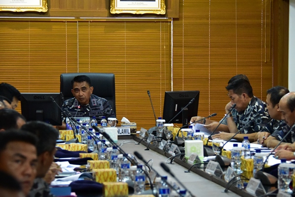 MNOL, Jakarta – Komando Lintas Laut Militer (Kolinlamil) merumuskan konsep buku petunjuk pelaksanaan angkutan laut dalam operasi militer di Ruang Rapat, Mako Kolinlamil, Jakarta, Kamis (30/3).