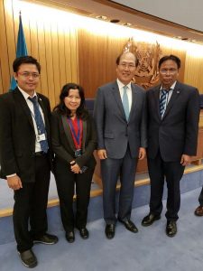 Tampak pada gambar dari kiri ke kanan : Herwindo Bagian Hukum DJPL, Een Nuraini Direktorat Lalulintas dan Angkutan Laut, Kitack Lim Sekjen IMO, dan Simson Sinaga Atase Perhubungan di London