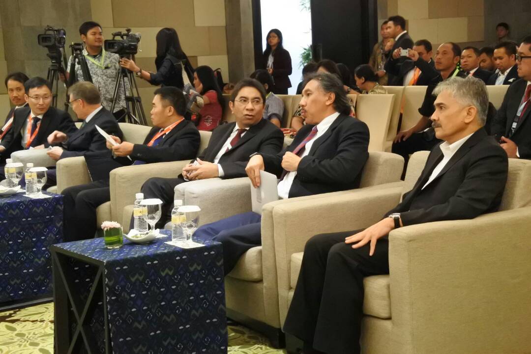 Direktur Utama IPC (tengah) bersama Vice GM Port of Ningbo, Deputi Infrastruktur Kemenko Kemaritiman, dan Direktur SDM Hukum IPC menjelang penandatanganan MoU Sister Port, di Bali Nusa Dua Convention Center