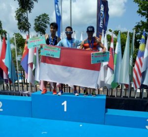 MN, Surabaya – Atlet Triathlon dari Satuan Komando Pasukan Katak (Satkopaska) Komando Armada RI Kawasan Timur (Koarmatim) membuat nama negara Indonesia harum dimata dunia, sosok prajurit pasukan elite TNI Angkatan Laut berhasil menyabet juara dalam ajang bergengsi 25 th Asian Triathlon Championship 2017 yang berlangsung di Jakabaring Sport City (JSC) Palembang, Provinsi Sumatra Selatan, Minggu (23/7).
