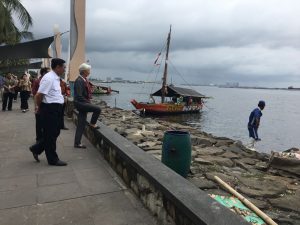 Setelah mengunjungi TPI Cilincing, Menko Luhut lalu mengajak Ms. Lagarde melihat suasana sungai Cilincing yang dulunya penuh dengan sampah dan kini telah menjadi lebih baik.