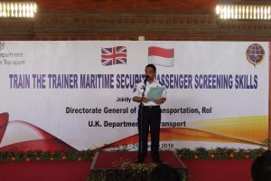 MN, Benoa – Dalam rangka penanganan aspek keselamatan pelayaran di perairan Indonesia, jajaran Kementerian Perhubungan meningkatkan kemampuan dan profesionalisme sumber daya manusia (SDM) dengan menggelar pelatihan maritime security bersama United Kingdom (UK) Department for Transport pada tanggal 18 – 21 Februari 2019 di Benoa, Bali.
