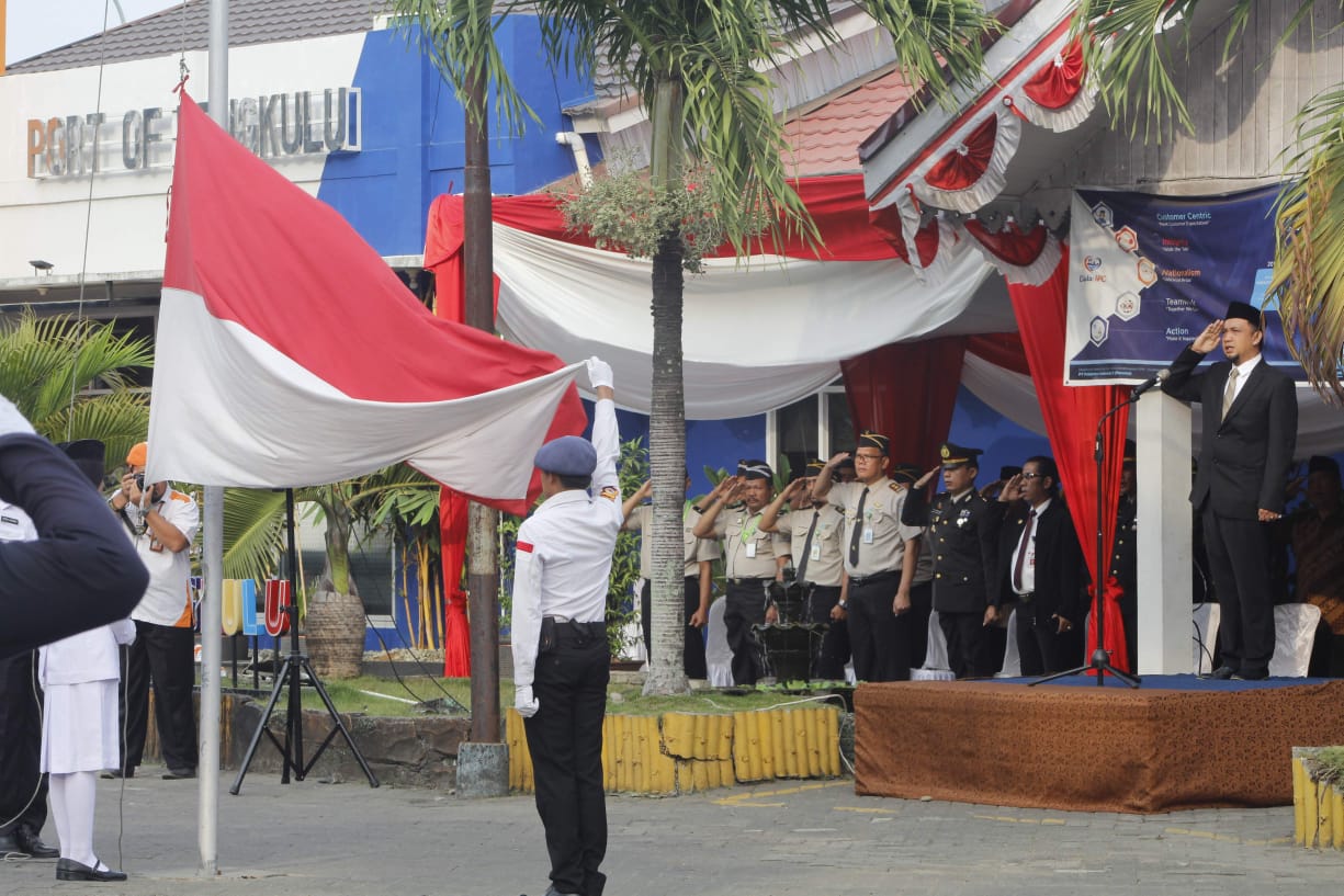 Peringatan HUT RI ke-74 di pelabuhan Pulau Baai diikuti seluruh Instansi terkait, sedangkan managerial IPC Bengkulu hadir DGM Keuangan dan SDM Asep Sudrajat, DGM Komersial Hendri Adolf, ADGM SDM dan KBL Budi Utama serta Ivan Zulhivan selaku Komandan Upacara.