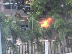 Selain itu, di area parkir Lapangan Tembak Senayan satu unit Jeep Robicon juga tampak hangus. Berikutnya satu unit kendaraan taktis pengendali massa dirusak, kaca depan tampak hancur. Beberapa sepeda motor di dekat Stasiun Palmerah tinggal kerangka karena dibakar.
