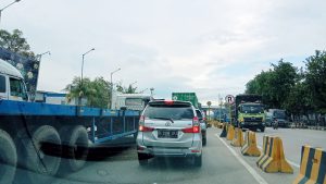 Beberapa truk trailer juga suka “parkir liar” mungkin menunggu schedule bongkar/muat di sepanjang bahu jalan ke arah Terminal Penumpang Nusantara, baik itu truk tanpa petikemas maupun yang sedang bawa empty container.