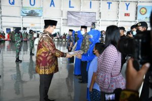MN, Surabaya – Upacara Militer dipimpin Menteri Pertahanan Republik Indonesia (Menhan RI) Prabowo Subianto digelar Pemerintah bagi para Prajurit KRI Nanggala-402 yang gugur dalam tugas di utara Perairan Bali. Pangkatnya dinaikan satu tingkat lebih tinggi dan dianugerahi Tanda Kehormatan RI Bintang Jalasena Nararya di Hanggar 2 Bandara Juanda, Sidoarjo, Kamis (29/4).