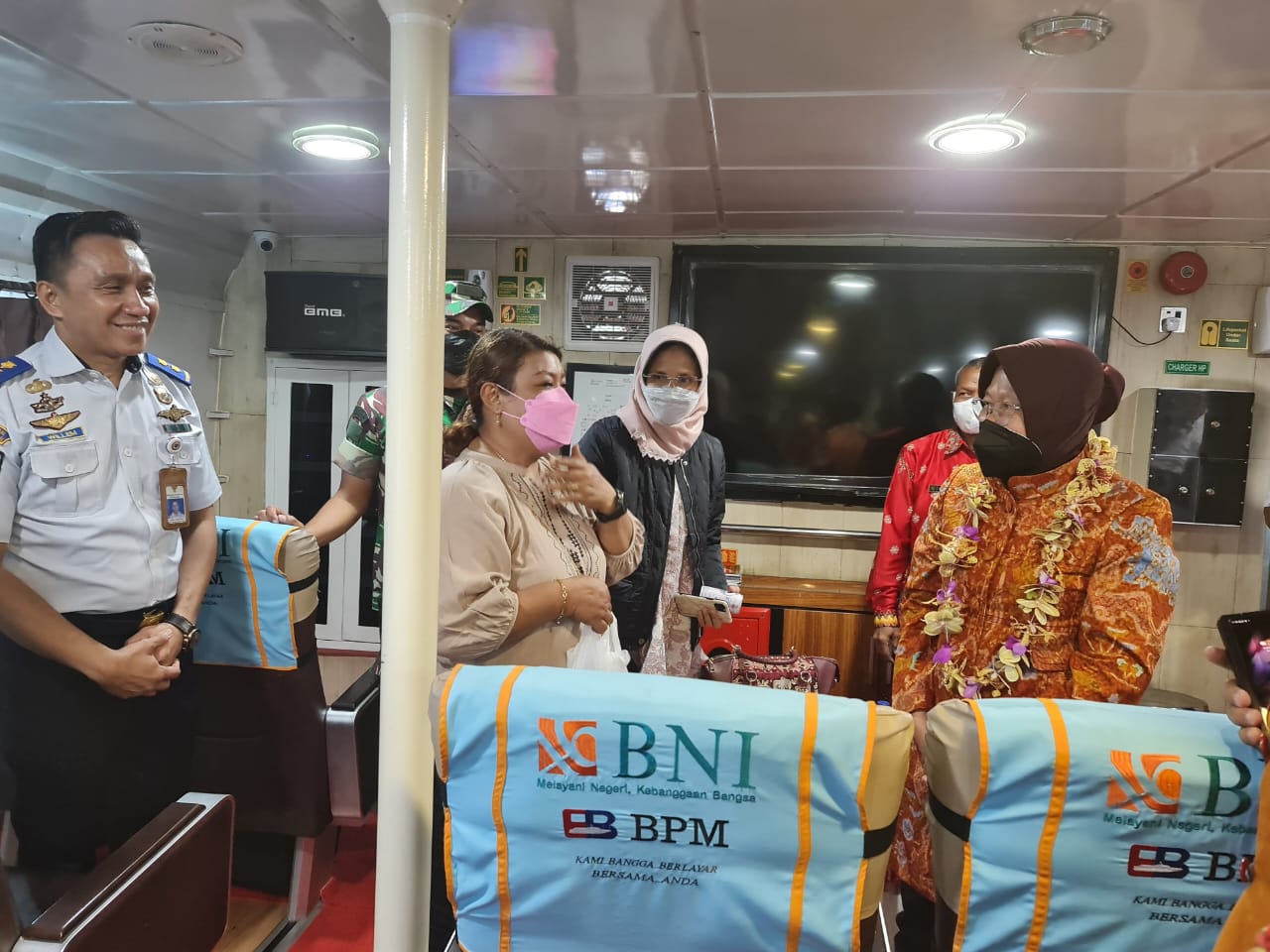 Mensos Risma saat mengunjungi kapal perintis yang akan melayani para peserta Sidang Sinode di Papua