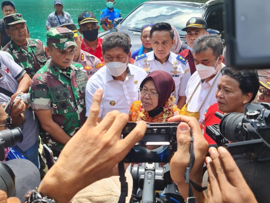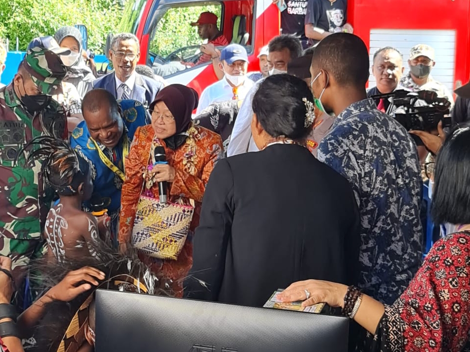 MN, Papua – Menteri Sosial Republik Indonesia Tri Rismaharini berkunjung ke Kabupaten Kepulauan Yapen dalam rangka mengunjungi lokasi pertanian rumput laut dan berdialog dengan petani dan nelayan setempat, sekaligus untuk menghadiri dan melihat langsung proses penyelenggaraan Sidang Sinode ke 18 di Kabupaten Waropen, Papua.