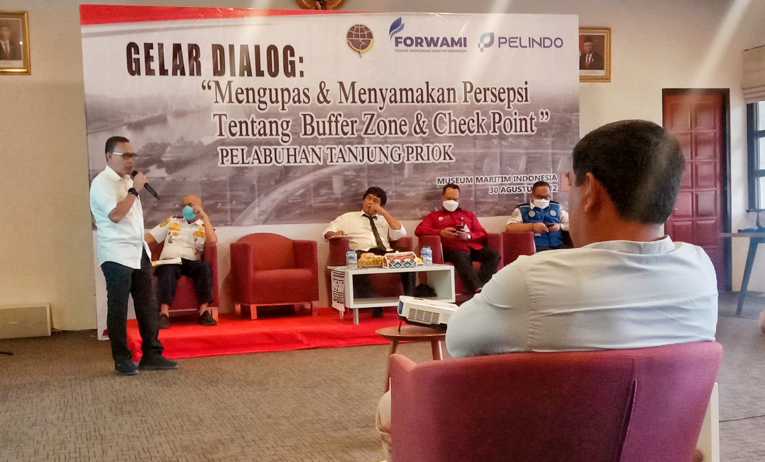 Terkait Buffer Zone, Kepala Otoritas Pelabuhan (OP) Utama Tanjung Priok, Capt Wisnu Handoko menjelaskan saat Gelar Dialog bertema “Mengupas & Menyamakan Persepsi Tentang Buffer Zone dan Check Point di Pelabuhan Tanjung Priok ” di Museum Maritim, Selasa (30/8), bahwa fasilitas buffer merupakan lokasi parkir truk sekaligus area pemeriksa kelengkapan armada truk yang berkegiatan di Terminal Peti Kemas.
