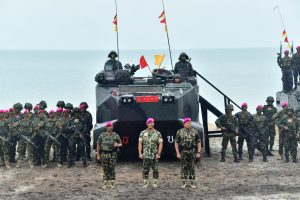 Jakarta (Maritimnews) – Panglima Tentara Nasional Indonesia Jenderal TNI Muhammad Andika Perkasa, S.E., M.A., M.Sc., M.Phil., Ph.D resmi menjadi Warga Kehormatan Korps Marinir TNI AL melalui prosesi penyematan Brivet Intai Para Amfibi Marinir dan Anti Teror Aspek Laut oleh Komandan Korps Marinir (Dankormar) Mayor Jenderal TNI (Mar) Widodo Dwi Purwanto serta penyematan baret Ungu Korps Marinir oleh Kepala Staf Angkatan Laut (Kasal) Laksamana TNI Yudo Margono, S.E., M.M di Pantai Todak, Dabo Singkep, Kepulauan Riau, Kamis (05/07/2022).