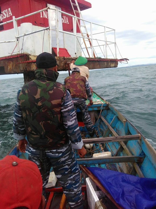 Beberapa kapal nelayan yang lewat Mercusuar Karang Unarang, turut membantu personel Kal Bokori mengganti bendera merah putih yang rusak.