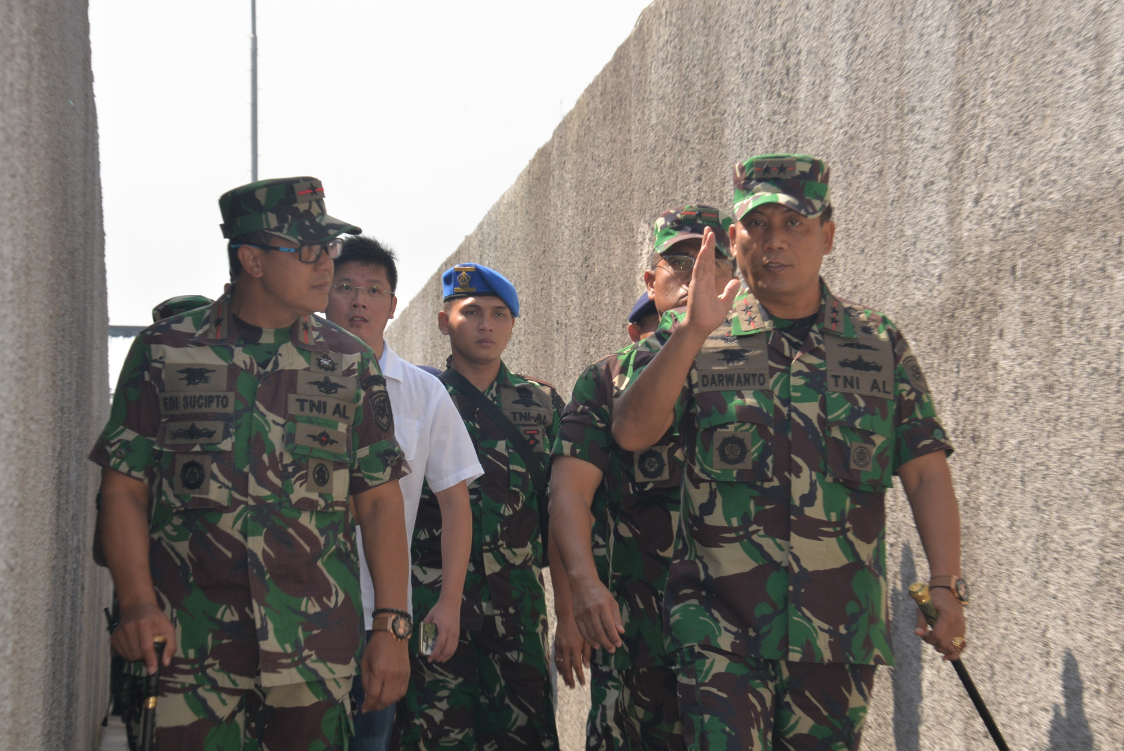 MNOL, Surabaya – Panglima Komando Armada RI Kawasan Timur (Pangarmatim) Laksamana Muda (Laksda) TNI Darwanto, S.H.,M.A.P., di dampingi oleh Komandan Pangkalan Utama TNI AL (Danlantamal) V Surabaya Laksamana Pertama (Laksma) TNI Edi Sucipto, S.E., M.M., dan Komandan Gugus Tempur Laut Wilayah Timur (Danguspurlatim) Laksma TNI Dadi Hartanto, MTr (Han), meninjau pembangunan Fasilitas Lantamal V Surabaya meliputi, Pembangunan Balai Prajurit, Mess Perwira dan Lapangan Tembak JW. Kainama dilahan TNI AL Pesapen Surabaya, Rabu (8/3).