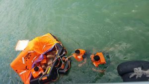 Kepala BTKP Binari Sinurat (tengah) saat uji inflatable liferaft