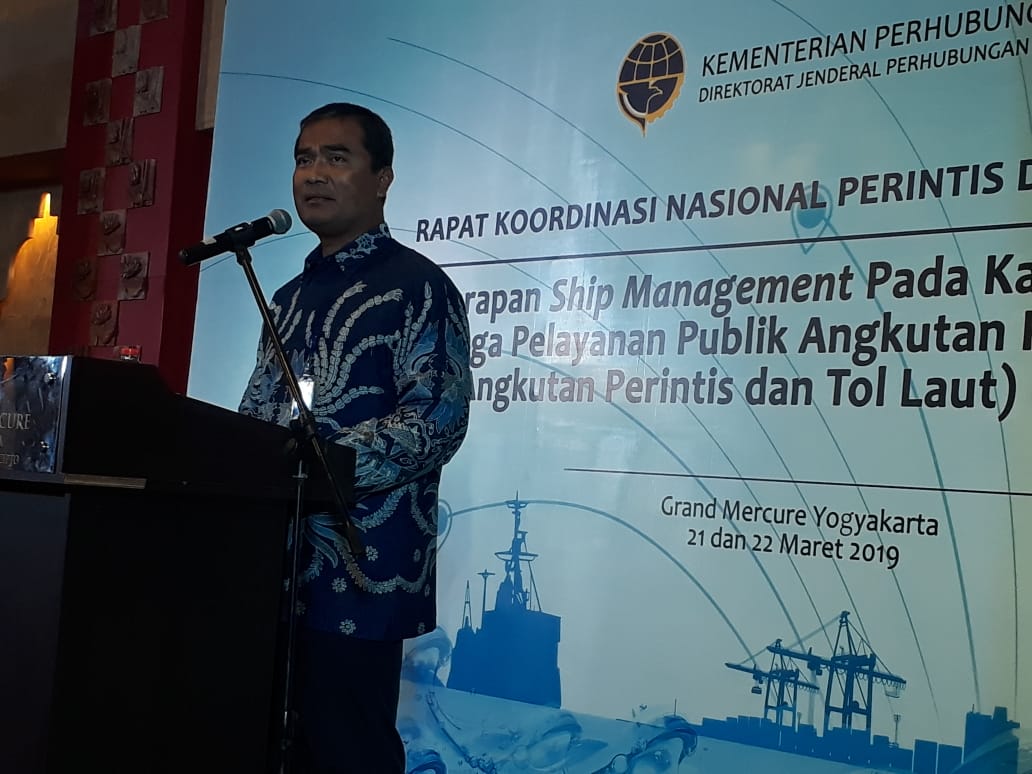 Hal itu dikatakan oleh Direktur Jenderal Perhubungan Laut Kemenhub, Agus H Purnomo saat memberikan pengarahan pada Rapat Koordinasi Nasional (Rakornas) Angkutan Perintis dan Tol Laut Tahun Anggaran 2019 di Jogjakarta, Kamis (21/3).