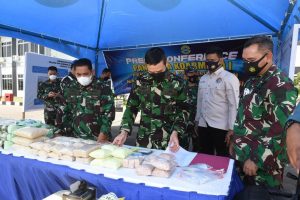 Setelah mendalami informasi tersebut, TNI AL mengerahkan personel gabungan untuk melaksanakan pengejaran penangkapan dan penyelidikan terhadap sebuah kapal tanpa nama yang diawaki KH (33) sebagai nakhoda dan ABK HS (34). Pada Minggu, 18 April 2021 sekitar pukul 00.45 WIB petugas Gabungan TNI AL melaksanakan penggeledahan dan menemukan enam karung goni mencurigakan yang dibungkus karung plastik di bagian palka buritan kapal yang kemudian diketahui berisi paket narkoba jenis sabu dan ekstasi.