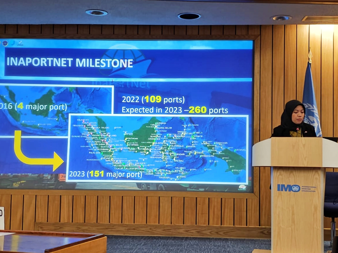 Adapun presentasi program Inaportnet di Indonesia dalam Sidang IMO tersebut disampaikan oleh Ayu Kharizsa, seorang Aparatur Sipil Negara (ASN) perempuan dari Direktorat Jenderal Perhubungan Laut yang telah berkecimpung selama 13 tahun di bidang IT, salah satunya adalah Inaportnet.