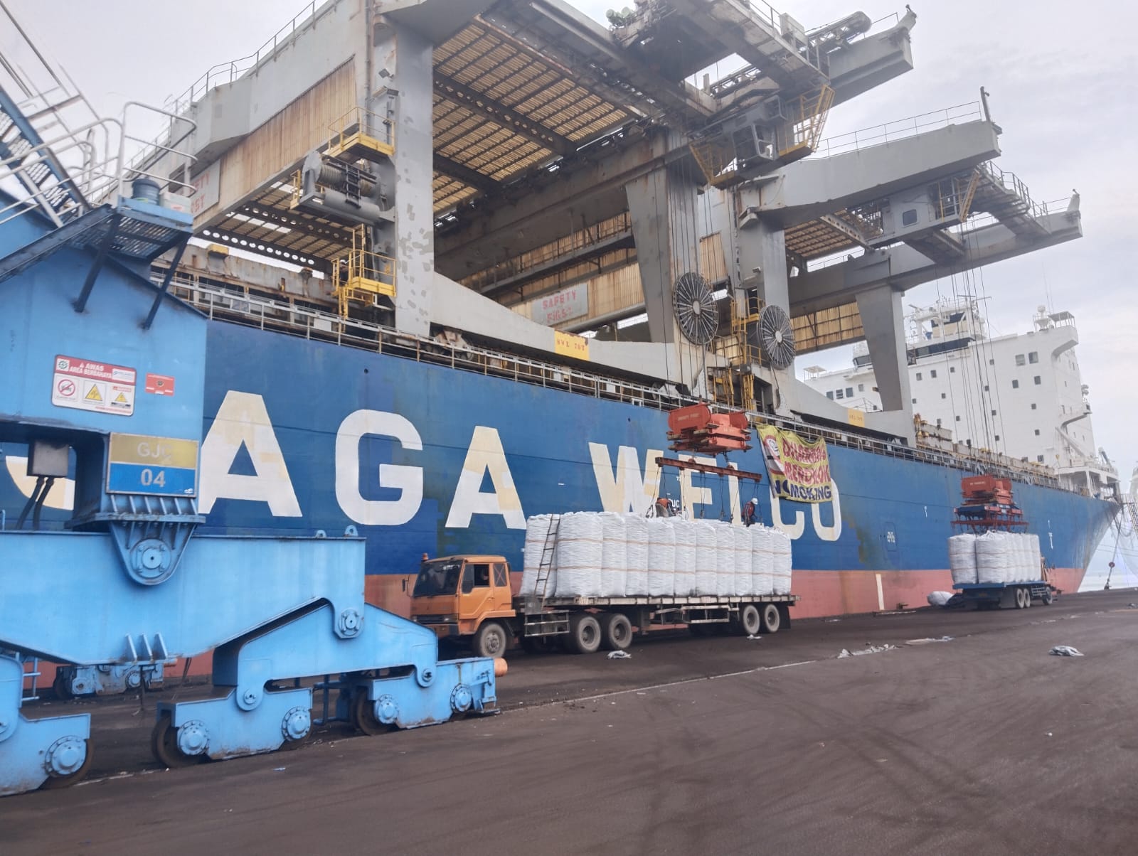 Kegiatan muat komoditas Arang Kayu di pelabuhan Panjang